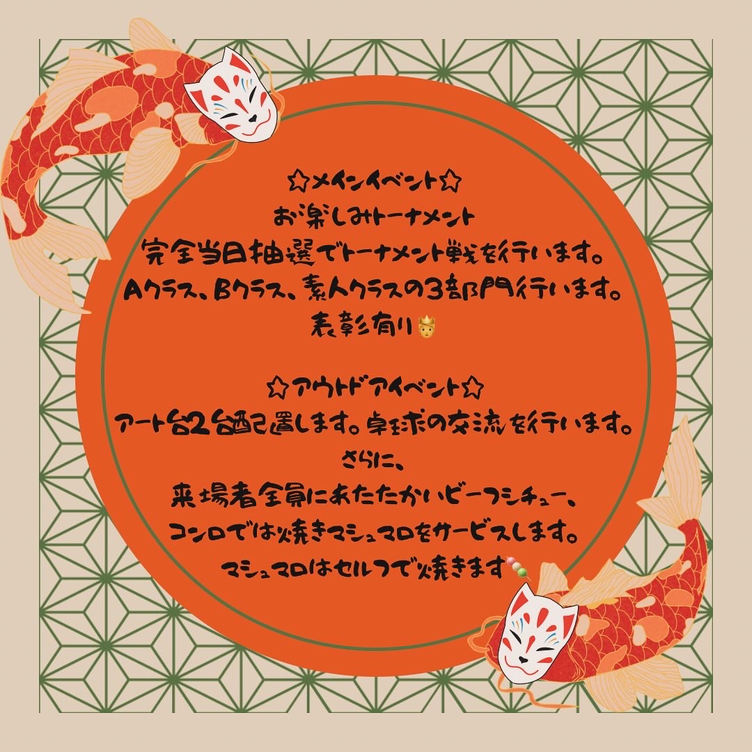 その他暖かい飲食の提供の他、外ではアート台の卓球をお楽しみいただけます。