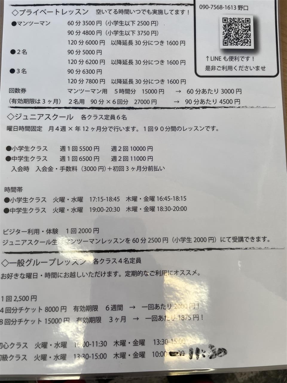 ・ジュニアスクールのビジター参加料金を初回のみ2,000円、通常2,500円に変更します。