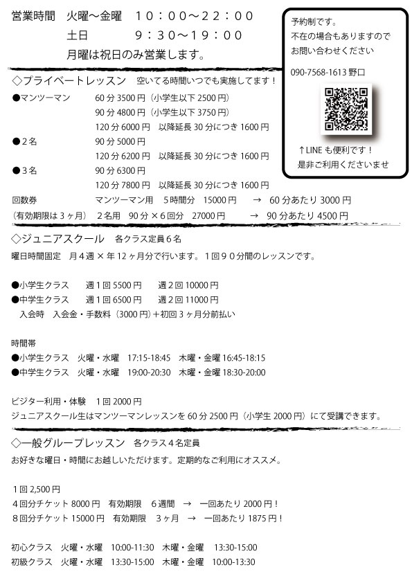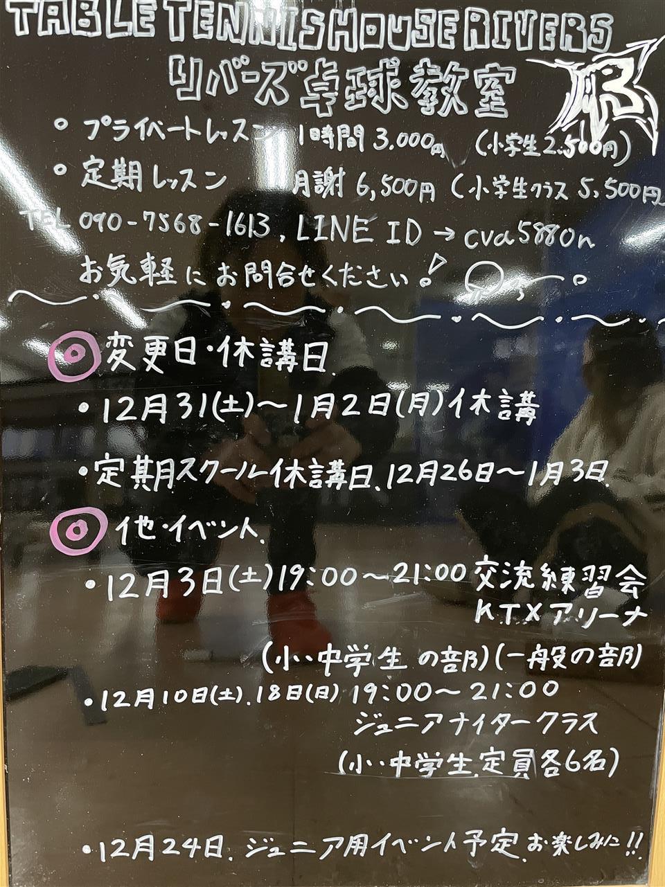 (定期スクールは12月26日から休みです)