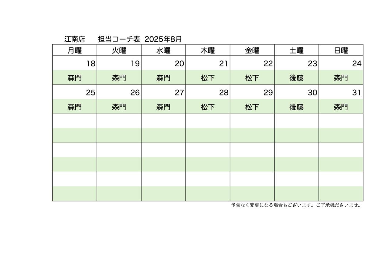 ・江南店土曜日(9:30〜19:00)のレッスン始めます!担当は後藤コーチです。