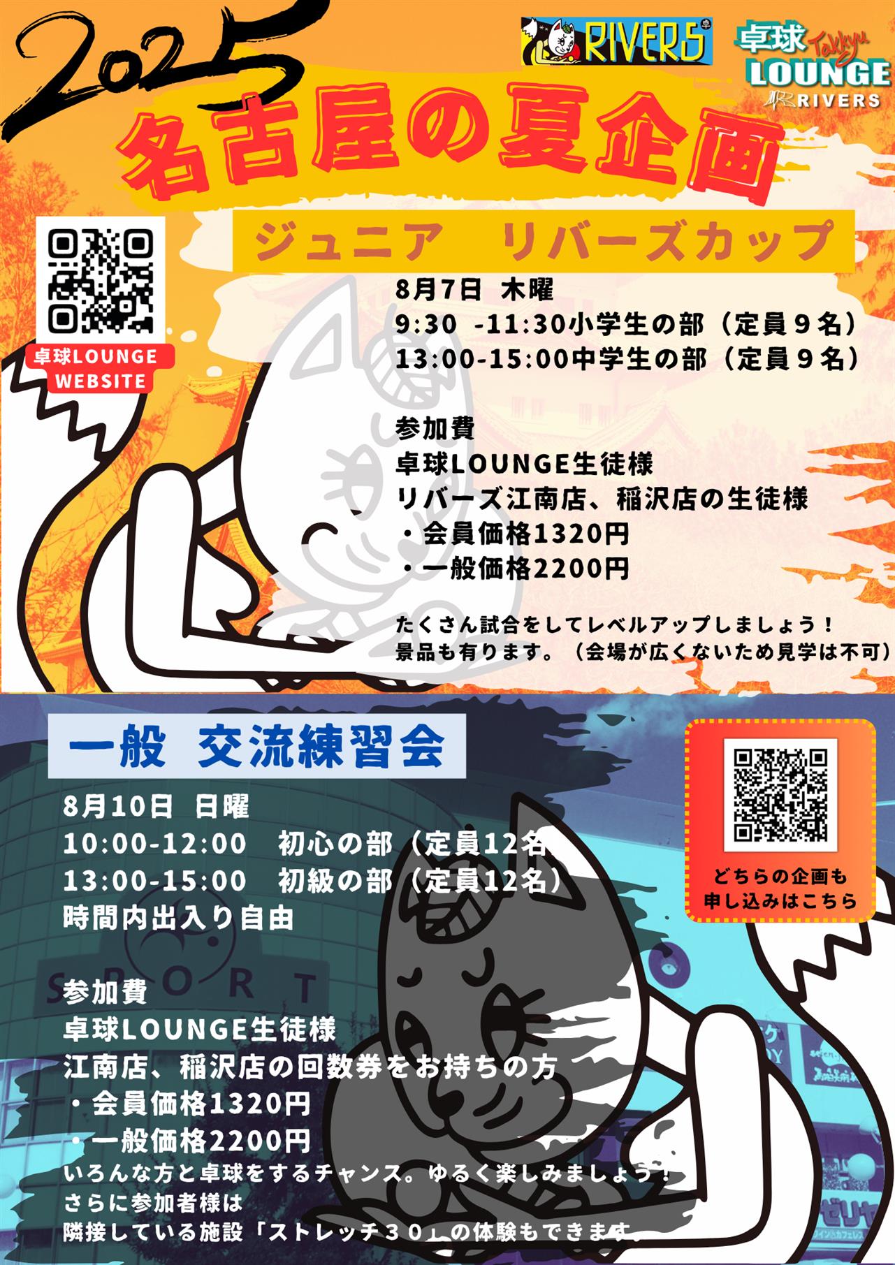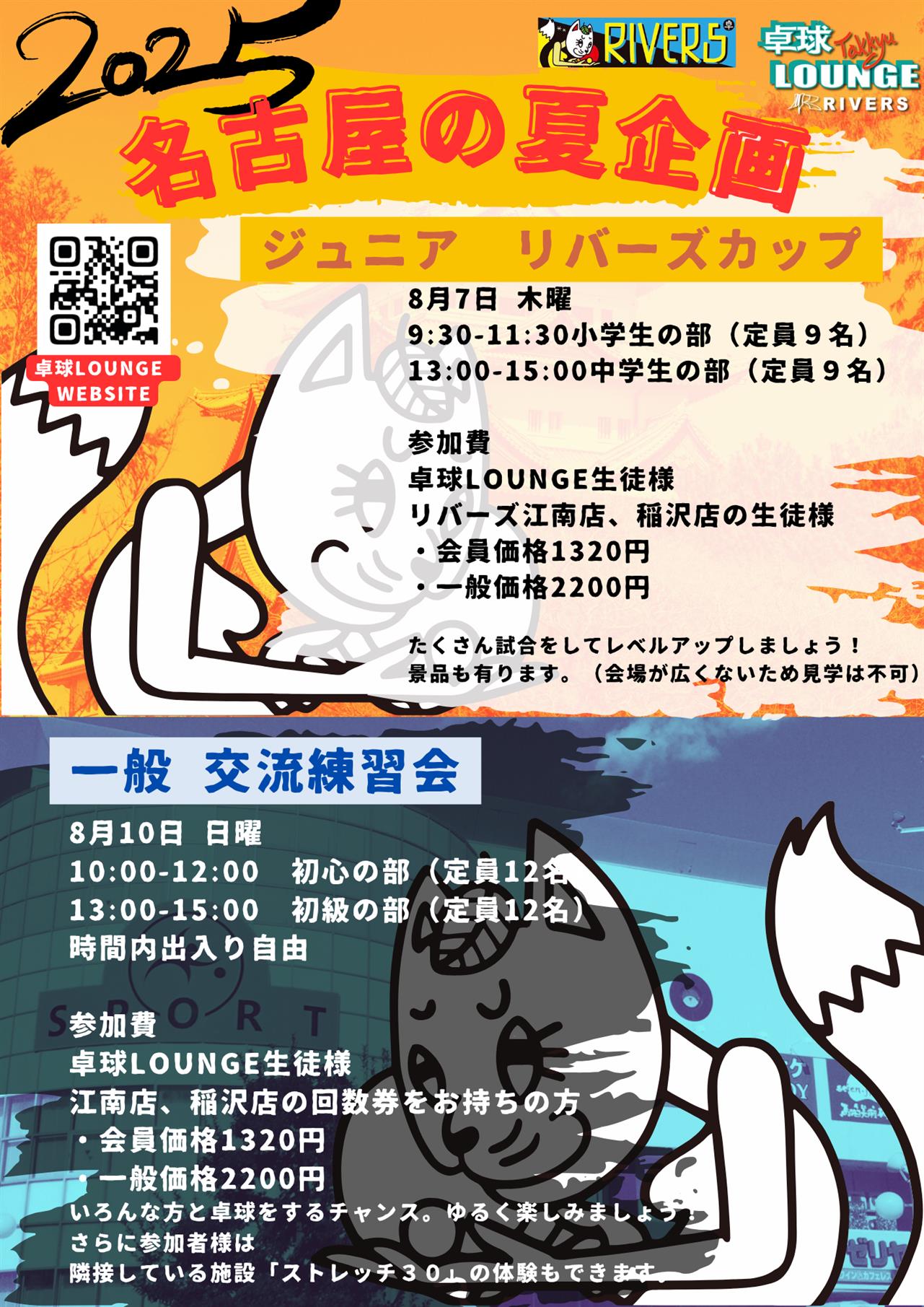 2025年8月7日、10日に名古屋でリバーズの企画を行います。https://tennislounge.event.smarthello.jp/general/38fd7fd6f04a4be3baf01c3087415407?fbclid=PAZXh0bgNhZW0CMTEAAae6G-1sP-VDPz6eouNTXW9IPo0hQkHFqYWgA7O_COJs3QAKq8jgmSsILpKhFw_aem_SKWEvu0S5UbRbyEUA_YU1A