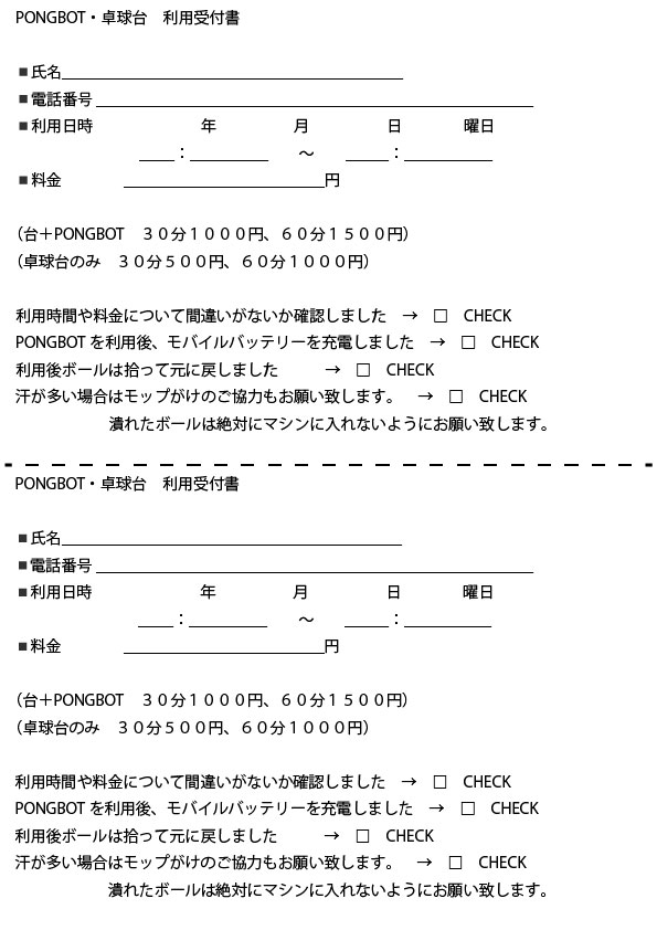 PONG BOTや台利用で9:30〜19:00までの時間帯でセルフでご利用いただける仕組みを考えております。