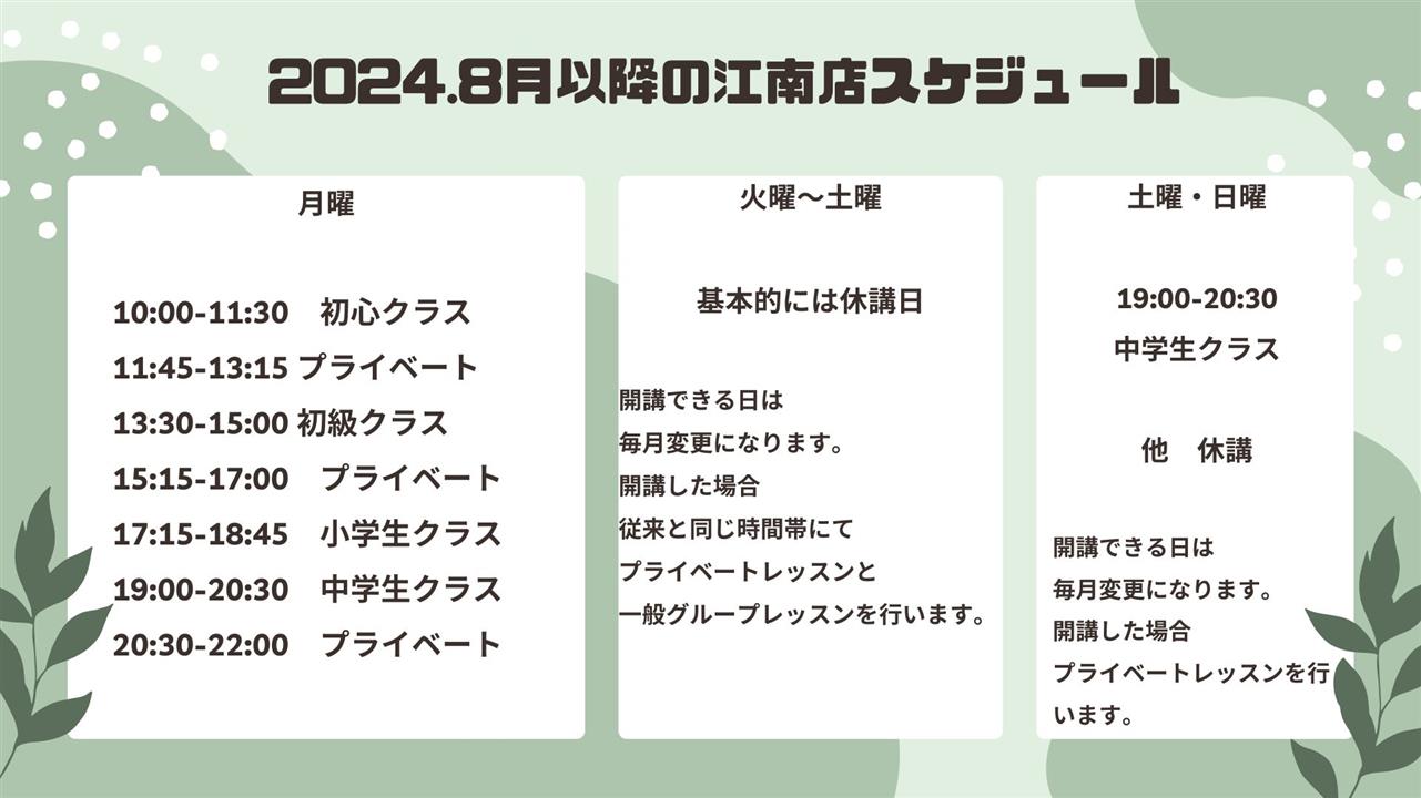 遅くなってしまいましたが江南店9月分グループレッスン予約受付開始致しました。
