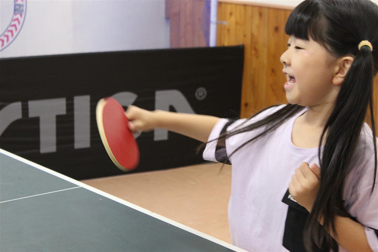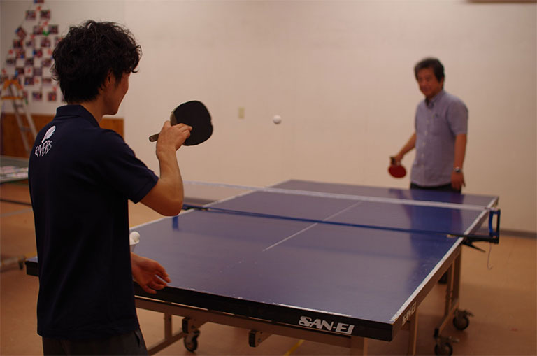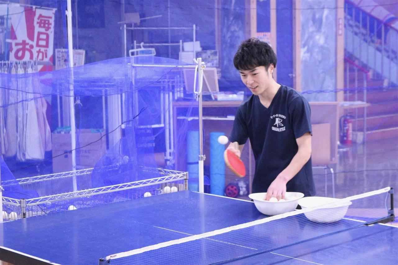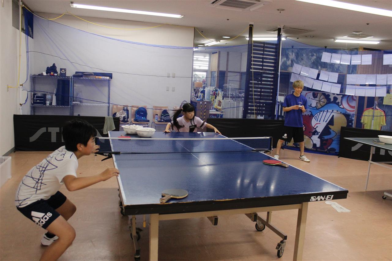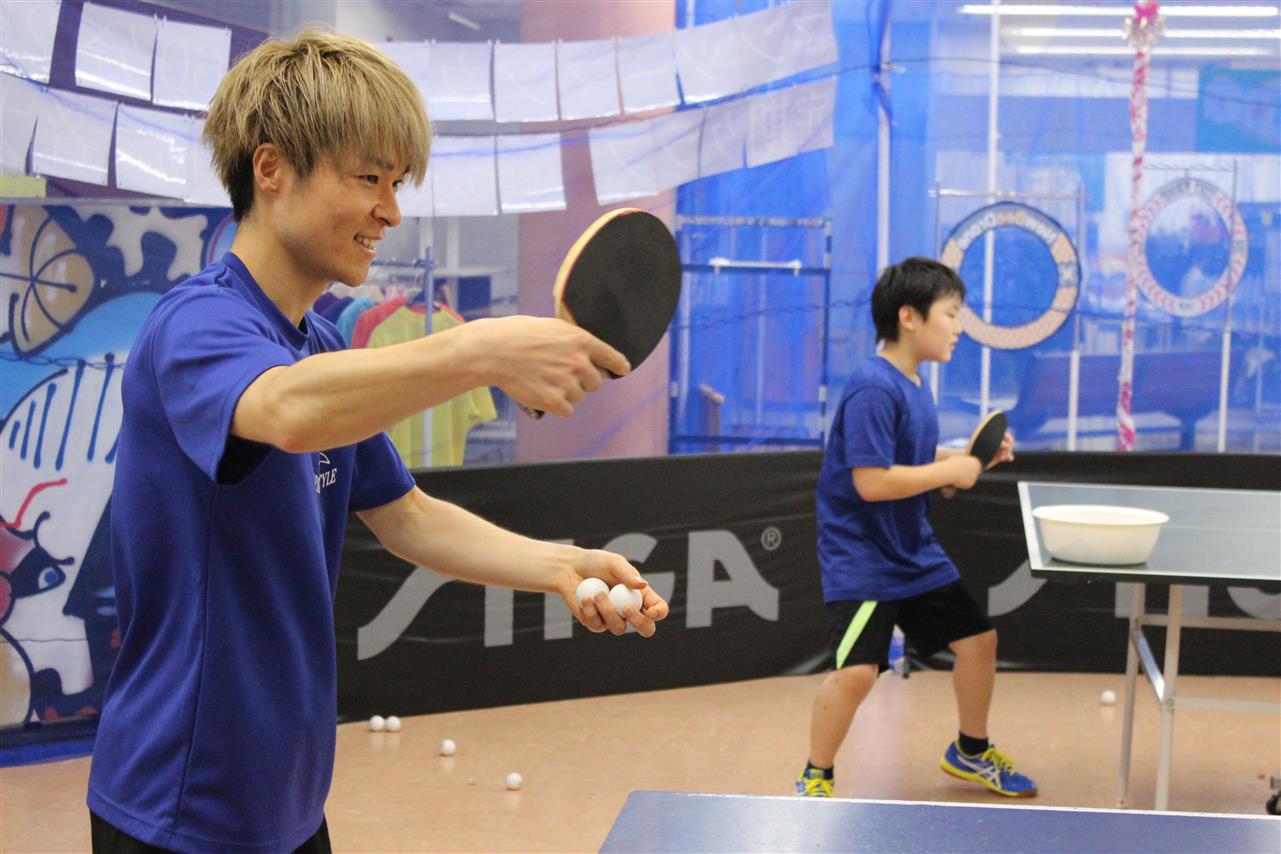 レッスン風景です。準備体操から始まって、ラケットの握り方から、基礎打ち、感覚的な練習や多球練習、システム練習を行います。